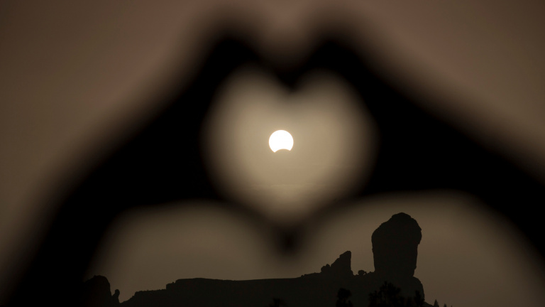 Fotogalerías Este artículo se publicó hace 9 años.Eclipse de SolEl gran eclipse solar americanoTamaño de letraColor de fondoComparteComentaPedro González de la Calleja22/08/2017 11:51-Actualizado a22/08/2017 12:08Tamaño de letraColor de fondoComparte0Comenta Una mujer hace el gesto del corazón con las manos enmarcando el eclipse de Sol, en el Roque Nublo, en Gran Canaria. REUTERS/Borja SuarezPublicidad El anillo que forma el eclipse de Sol visto desde el parque nacional de Great Smoky Mountains, en Tennessee (EEUU). REUTERS/Jonathan Ernst Imagen cedida por la Nasa, que muestra una composición de fotos que muestran la transición del eclipse de sol, desde Madras, Oregon (Estados Unidos): NASA/Aubrey Gemignani Un par de personas observan el ecliopse de Sol en Oregon (EEUU). REUTERS/Adrees Latif Vista del eclipse de sol parcial desde la montaña Puerto del Viento, en Ronda (Málaga). REUTERS/Jon NazcaPublicidad Vista del eclipse solar desde la Universidad Nacional de Ingeniería (UNI), donde la Asociación Nicaragüense de Astrónomos Aficionados (ANASA), y el público en general asistió para observar el eclipse de Sol, que se presentó de forma parcial en Managua (Nicaragua). EFE/Jorge Torres Vista general del eclipse captado parcialmente con la mitad de un protector, desde la ciudad de Saltillo, en el estado de Coahuila (México). EFE/Miguel Sierra La silueta de la ermita de Saint-The, en la Bretaña francesa, durante el eclipse de Sol. REUTERS/Mal LangsdonPublicidad El eclipse de Sol visto junto a la estatua de Anjo Moroni, en la iglesia mormona de la ciudad brasileña de Manaos. REUTERS/Bruno Kelly Vista del eclipse solar desde una playa de Chilmark, Massachusetts (Estados Unidos). EFE/JUSTIN LANE El eclipse de sol visto desde el puente de Brooklyn, en Nueva ork (EEUU). REUTERS/Stephanie Keith Imagen cedida por la NASA, muestra una composición de fotografías de la trallectoria del eclipse solar desde el Parque nacional de las Cascadas del Norte, en Washington (Estados Unidos). NASA/Bill Ingalls La sombra de la luna sobre los EEUU vista deasde la Estación Espacial Internacional, en el eclipse de Sol. REUTERS/@Space_StationPublicidad El presidente de EEUU, Donald Trump, y su esposa Melania observan el eclipse de Sol en la Casa Blanca, en Washington (EEUU). REUTERS/Kevin LamarqueComparteComentarios de nuestros socias/os¿Quieres comentar?Para ver los comentarios de nuestros socias y socios, primero tienes que iniciar sesión o registrarte. Escribe tu comentario Recuerda las normas de la comunidad.Enviar Descartar