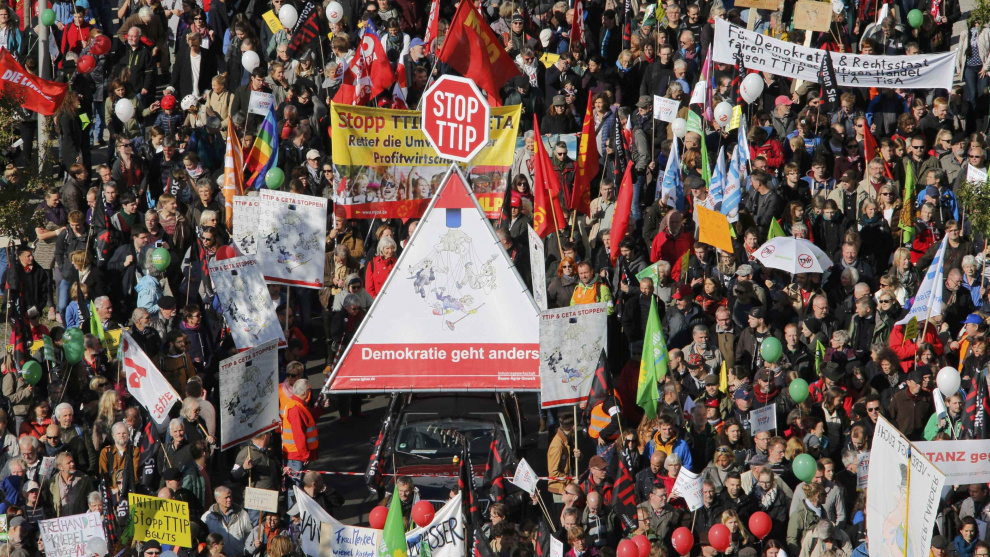 Fotogalerías Última horaEn directoIsrael asegura que ha destruido el bunker de Jameneí e Irán responde con drones sobre Tel AvivÚltima horaEn directoIsrael asegura que ha destruido el bunker de Jameneí e Irán responde con drones sobre Tel Aviv Este artículo se publicó hace 11 años.Imágenes de la protesta en Berlín contra 'la OTAN de la economía'Tamaño de letraColor de fondoComparteComentaPedro González de la Calleja10/10/2015 17:40-Actualizado a10/10/2015 17:58Tamaño de letraColor de fondoComparte0Comenta Activistas de los derechos de consumidores participan en la marcha para protestar contra TTIP en Berlín.- REUTERS.Publicidad Activistas de los derechos de consumidores participan en la marcha para protestar contra TTIP en Berlín.- REUTERS. Vista general de la manifestación en Berlín contra el TTIP. REUTERS/Fabrizio Bensch Un muñeco que representa a la canciller alemana, Angela Merkel, encendiendo 'la bomba TTIP', en la manifestación de Berlín contra el acuerdo comercial que negocia la UE con EEUU. EFE / EPA / JOERG CARSTENSEN La marcha contra el TTIP pasa por delante del edificio del Reichstag alemán (el Parlamento). EFE / EPA / WOLFRAM STEINBERGPublicidad Activistas de los derechos de consumidores.- REUTERS. Activistas de los derechos de consumidores participan en una marcha para protestar contra TTIP en Berlín.- REUTERS Activistas de los derechos de consumidores participan en la marcha para protestar contra TTIP en Berlín.- REUTERS.Publicidad Algunas de las pancartas de la marcha en Berlín contra el TTIP. REUTERS/Fabrizio Bensch Activistas de los derechos de consumidores participan en la marcha para protestar contra TTIP en Berlín.- REUTERS. Los participantes en la manifestación contra el TTIP pasan por delante de la sede de la Cancillería, donde tiene su despacho Angela Merkel, en Berlín. EFE/EPA/JOERG CARSTENSEN Activistas de los derechos de consumidores participan en la marcha para protestar contra TTIP en Berlín.- REUTERS. Activistas de los derechos de consumidores participan en la marcha para protestar contra TTIP en Berlín.- REUTERS.Publicidad Los manifestantes llevan grandes letras rojas que forman la palabra 'STOP' durante una manifestación contra el TTIP en Berlín.EFE/EPA/GREGOR FISCHER Los limpiadores de carreteras de Berlín forman parte de la marcha para protestar contra TTIP.- REUTERS.Publicidad Varias parejas bailan el 'Tango contra el TTIP' en el curso de la manifestación en Berlín contra el acuerdo comercial que negocia la UE con EEUU. EFE/EPA/KAY NIETFELDComparteComentarios de nuestros socias/os¿Quieres comentar?Para ver los comentarios de nuestros socias y socios, primero tienes que iniciar sesión o registrarte. Escribe tu comentarioRecuerda las normas de la comunidad.Enviar Descartar