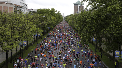 Fotogalerías Este artículo se publicó hace 11 años.Madrid se llena de zancadasTamaño de letraColor de fondoComparteComentaPúblico 26/04/2015 14:27-Actualizado a26/04/2015 14:29Tamaño de letraColor de fondoComparte0Comenta Participantes en el maratón de Madrid corren por el Paseo de la Castellana. La prueba, que transcurre por lugares emblemáticos de la capital como El . /Angel Díaz (EFE)Publicidad Corredores en el maratón de Madrid, a su paso por el Palacio Real. /Víctor Lerena (EFE) Corredores en el maratón de Madrid, a su paso por el Palacio Real. /Víctor Lerena (EFE) Un grupo musical ameniza el paso de participantes en el maratón de Madrid, carrera, que transcurre por lugares emblemáticos de la capital como El Retiro, el Palacio Real y el Estadio Santiago Bernabéu, se enmarca en la 38 edición del 'EDP Rock 'n' Roll Madrid Maratón & 1/2'y cuenta con 15.000 personas inscritas. Angel Díaz (EFE) Participantes en el maratón de Madrid corren por el Paseo de la Castellana.. /Angel Díaz (EFE)Publicidad Participantes en el maratón de Madrid que han recorrido bajo la lluvia lugares emblemáticos de la ciudad, desde la plaza de Cibeles hasta el parque de El Retiro, y que ha contado con 15.000 corredores. Víctor Lerena (EFE) Dos participantes en el maratón de Madrid, a su paso por la Puerta de Alcalá. /Angel Díaz (EFE) Corredores del maratón de Madrid a su paso por la calle Bailén. /Víctor Lerena (EFE)Publicidad Participantes en el maratón de Madrid corren por el Paseo de la Castellana. /Angel Díaz (EFE) Corredores del maratón de Madrid reponen fuerzas a su paso por la calle Bailén. /Víctor Lerena (EFE) Participantes en el maratón de Madrid que han recorrido bajo la lluvia lugares emblemáticos de la ciudad, desde la plaza de Cibeles hasta el parque de El Retiro, y que ha contado con 15.000 corredores. /Víctor Lerena (EFE) Participantes en la prueba de 10 kilómetros de la 38 edición del 'EDP Rock 'n' Roll Madrid Maratón & 1/2' que discurre de la Plaza de Cibeles hasta el parque de El Retiro. Angel Díaz (EFE) Corredores en el maratón de Madrid, a su paso por el Palacio Real, uno de los lugares emblemáticos por los que transcurre la carrera. /Víctor Lerena (EFE)Publicidad Ezekiel Kiptoo Chebii, primer atleta que corrió el maratón de Madrid en menos de 2h10, cruza la meta para repetir victoria en la 38 edición del 'EDP Rock 'n' Roll Madrid Maratón, que ha discurrido bajo la lluvia desde la plaza de Cibeles hasta el parque de El Retiro, en un recorrido por las principales calles de la ciudad en el que han participado 15.000 corredores./ EFE/Angel DíazComparteComentarios de nuestros socias/os¿Quieres comentar?Para ver los comentarios de nuestros socias y socios, primero tienes que iniciar sesión o registrarte. Escribe tu comentarioRecuerda las normas de la comunidad.Enviar Descartar