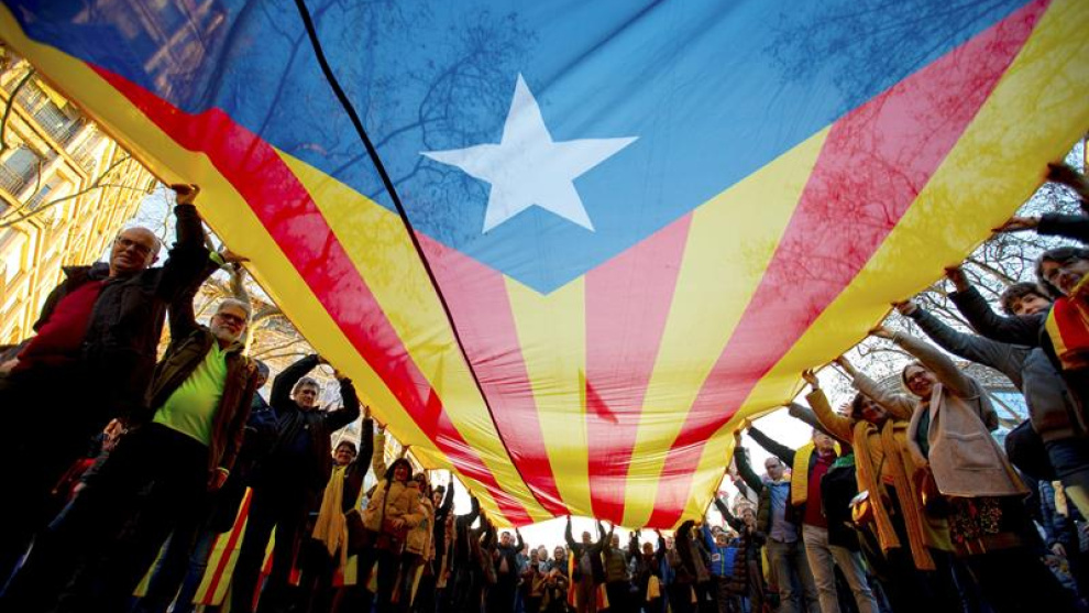 Fotogalerías Este artículo se publicó hace 7 años.JUICIO PROCÉSLa manifestación contra el juicio al 'procés', en imágenesTamaño de letraColor de fondoComparteComentaPúblico 17/02/2019 14:10Tamaño de letraColor de fondoComparte0Comenta Manifestantes portan una gran estelada durante la movilización. EFE/Enric FontcubertaPublicidad Miles de personas participan en la manifestación convocada por ANC y Òmnium Cultural. EFE/Alejandro García El presidente de la Generalitat Quim Torra, junto al presidente del Parlament Roger Torrent, y la hermana de Carles Puigdemont, Montserrat Puigdemont, en la cabecera de la manifestación. EFE/Alejandro García Elsa Artadi conversa con el presidente de la Generalitat Quim Torra en la cabecera de la manifestación. EFE/Alejandro García Pancartas de la manifestación convocada por ANC y Òmnium Cultural. EFE/Alejandro GarcíaPublicidad Cabecera de la manifestación. EFE/ Alejandro García La actriz Nuria Feliu durante la manifestación convocada por ANC y Òmnium Cultural. EFE/ Enric Fontcuberta Manifestación convocada por ANC y Òmnium Cultural. EFE/ Enric FontcubertaPublicidad Manifestantes en la concentración convocada por ANC y Òmnium Cultural. EFE/ Enric Fontcuberta Vista aérea de la manifestación. EFE/ Enric Fontcuberta Manifestantes con pancartas. EFE/ Enric FontcubertaComparteComentarios de nuestros socias/os¿Quieres comentar?Para ver los comentarios de nuestros socias y socios, primero tienes que iniciar sesión o registrarte. Escribe tu comentarioRecuerda las normas de la comunidad.Enviar Descartar
