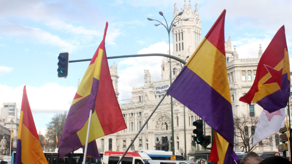 Fotogalerías Este artículo se publicó hace 10 años.La marcha en Madrid por la III República, en imágenesTamaño de letraColor de fondoComparteComentaPúblico 14/04/2016 22:37Tamaño de letraColor de fondoComparte0Comenta Banderas republicanas al inicio de la marcha en la Plaza de Cibeles. LORENA CALLE ESCRIBANOPublicidad Pancarta en la Puerta del Sol. LORENA CALLE ESCRIBANO Final de la marcha en la Puerta del Sol. LORENA CALLE ESCRIBANO Cartel durante la marcha en el que se puede leer "Franco o Borbón, ambos sin elección". LORENA CALLE ESCRIBANO Manifestantes durante la marcha por la III República en Madrid. LORENA CALLE ESCRIBANOPublicidad Pancartas durante la marcha. LORENA CALLE ESCRIBANO Banderas republicanas durante la marcha. LORENA CALLE ESCRIBANO Banderas y pancartas reivindican la llegada de la Tercera República. LORENA CALLE ESCRIBANOPublicidad Manifestantes al grito de "España, mañana, será republicana". LORENA CALLE ESCRIBANO Marcha por la III República en Madrid. LORENA CALLE ESCRIBANO Marcha por la III República en Madrid. LORENA CALLE ESCRIBANOComparteComentarios de nuestros socias/os¿Quieres comentar?Para ver los comentarios de nuestros socias y socios, primero tienes que iniciar sesión o registrarte. Escribe tu comentarioRecuerda las normas de la comunidad.Enviar Descartar