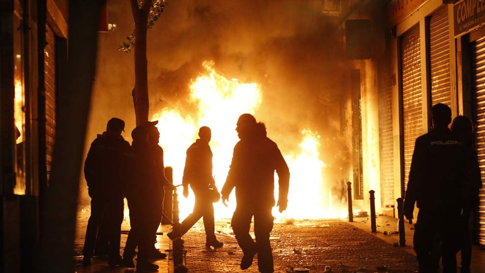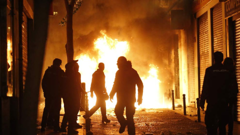 Fotogalerías ÚLTIMA HORAEn directoSigue la sesión de control al Gobierno en el CongresoÚLTIMA HORA»Yolanda Díaz no será candidata en las próximas elecciones generalesÚLTIMA HORAEn directoSigue la sesión de control al Gobierno en el CongresoÚLTIMA HORA»Yolanda Díaz no será candidata en las próximas elecciones generales Este artículo se publicó hace 8 años.Noche de disturbios en Lavapiés (Madrid)Tamaño de letraColor de fondoComparteComentaPúblico 16/03/2018 10:00Tamaño de letraColor de fondoComparte0Comenta Protestas en Lavapiés. | JAVIER LIZÓN (EFE)Publicidad Protestas en Lavapiés. | JAVIER LIZÓN (EFE) Contenedores incendiados en la calle Mesón de Paredes con la calle del Oso, en el barrio de Lavapiés de Madrid. | JAVIER LIZÓN (EFE) Policías antiditurbios en las calles del madrileño barrio de Lavapiés. | REUTERS Protestas en Lavapiés. | JAVIER LIZÓN (EFE)Publicidad Protestas en Lavapiés. | JAVIER LIZÓN (EFE) Policías antiditurbios en las calles del madrileño barrio de Lavapiés. | REUTERS Policías antidisturbios en la calle Mesón de Paredes con la calle del Oso, en el barrio de Lavapiés de Madrid. | JAVIER LIZÓN (EFE)Publicidad Protestas en Lavapiés. | JAVIER LIZÓN (EFE)ComparteComentarios de nuestros socias/os¿Quieres comentar?Para ver los comentarios de nuestros socias y socios, primero tienes que iniciar sesión o registrarte. Escribe tu comentarioRecuerda las normas de la comunidad.Enviar Descartar