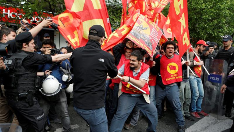 Fotogalerías Este artículo se publicó hace 10 años.El Primero de Mayo en el mundoTamaño de letraColor de fondoComparteComentaPúblico 01/05/2016 12:41-Actualizado a01/05/2016 17:51Tamaño de letraColor de fondoComparte0Comenta Manifestantes y policías se enfrentan durante la celebración del Día Internacional de los Trabajadores en Estambul, Turquía, donde ha sido declarada como ilegal. EFE/EPA/TOLGA BOZOGLUPublicidad Los manifestantes con banderas del Kurdistán se enfrentan con policías vestidos de paisanos durante la manifestación del Primero de Mayo en Estambul, Turquía. REUTERS / Murad Seze Los manifestantes filipinos queman una estatua en representación del presidente de Filipinas , Benigno Aquino III, durante una protesta con motivo del Día Internacional del Trabajo en Manila, Filipinas. EFE/EPA/MARK R. CRISTINO Una calle de Varsovia, Polonia, llena de personas celebrando el Día Internacional de los Trabajadores. EFE/EPA/LESZEK SZYMANSKI Los participantes de la marcha por el Día Internacional de los Trabajadores en Moscú, Rusia, muestran una pancarta en la que puede leerse "Unidad, solidaridad y derechos humanos". Más de 90.000 personas han acudido a la celebración en Moscú. EFE/EPA/SERGEI ILNITSKYPublicidad Trabajadores de la confección gritan consignas durante la marcha por el Día Internacional de los Trabajadores en Daca , Bangladés EFE / EPA / ABIR ABDULLAH Jóvenes lanzan piedras a la policía durante la manifestación contra de la propuesta de la legislación laboral francesa durante la marcha del Primero de Mayo.-REUTERS / Philippe Wojazer Policías antidisturbios franceses avanzan con escudos para hacer retroceder a los jóvenes que protestan en contra de la propuesta de la legislación laboral francesa durante la marcha del Primero de Mayo.-REUTERS / Philippe WojazerPublicidad Policías antidisturbios franceses avanzan con escudos para hacer retroceder a los jóvenes que protestan en contra de la propuesta de la legislación laboral francesa durante la marcha del Primero de Mayo.-REUTERS / Philippe Wojazer Policías antidisturbios franceses avanzan con escudos para hacer retroceder a los jóvenes que protestan en contra de la propuesta de la legislación laboral francesa durante la marcha del Primero de Mayo.-REUTERS / Philippe WojazerComparteComentarios de nuestros socias/os¿Quieres comentar?Para ver los comentarios de nuestros socias y socios, primero tienes que iniciar sesión o registrarte. Escribe tu comentarioRecuerda las normas de la comunidad.Enviar Descartar