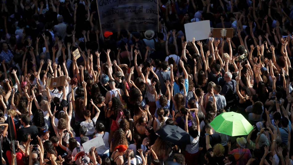 Fotogalerías Este artículo se publicó hace 8 años.Protesta ciudadana contra la libertad de 'La Manada'Tamaño de letraColor de fondoComparteComentaPúblico 22/06/2018 20:13-Actualizado a22/06/2018 21:00Tamaño de letraColor de fondoComparte0Comenta Manifestación de mujeres en Madrid, esta tarde ante el Ministerio de Justicia, en protesta por la puesta en libertad de 'La Manada'. (JUAN CARLOS HIDALGO | EFE)Publicidad Manifestación de mujeres en Madrid, esta tarde ante el Ministerio de Justicia, en protesta por la puesta en libertad de 'La Manada'. (JUAN CARLOS HIDALGO | EFE) Manifestación de mujeres en Madrid, esta tarde ante el Ministerio de Justicia, en protesta por la puesta en libertad de 'La Manada'. (JUAN CARLOS HIDALGO | EFE) Manifestación de mujeres en Madrid, esta tarde ante el Ministerio de Justicia, en protesta por la puesta en libertad de 'La Manada'. (JUAN CARLOS HIDALGO | EFE) Manifestación de mujeres en Madrid, esta tarde ante el Ministerio de Justicia, en protesta por la puesta en libertad de 'La Manada'. (JUAN CARLOS HIDALGO | EFE)Publicidad Manifestación de mujeres en Madrid, esta tarde ante el Ministerio de Justicia, en protesta por la puesta en libertad de 'La Manada'. (JUAN CARLOS HIDALGO | EFE) Aspecto de la manifestación en Pamplona. (VINCENT WEST | EFE) Manifestación de mujeres en Madrid, esta tarde ante el Ministerio de Justicia, en protesta por la puesta en libertad de 'La Manada'. (JUAN CARLOS HIDALGO | EFE)Publicidad Protesta ciudadana contra la libertad de 'La Manada' en Madrid.(JUAN CARLOS HIDALGO | EFE) Manifestación de mujeres en Zaragoza. (JAVIER BELVER | EFE) Vista general de la concentración convocada por la Asamblea Feminista del País Valencià. (KÄI FOSTERLING | EFE) Otro aspecto de la manifestación en Santander. (P. Puente Hoyos | EFE) Manifestación en Santander en protesta por la puesta en libertad de 'La Manada'. (PEDRO PUENTE HOYOS | EFE)ComparteComentarios de nuestros socias/os¿Quieres comentar?Para ver los comentarios de nuestros socias y socios, primero tienes que iniciar sesión o registrarte. Escribe tu comentario Recuerda las normas de la comunidad.Enviar Descartar