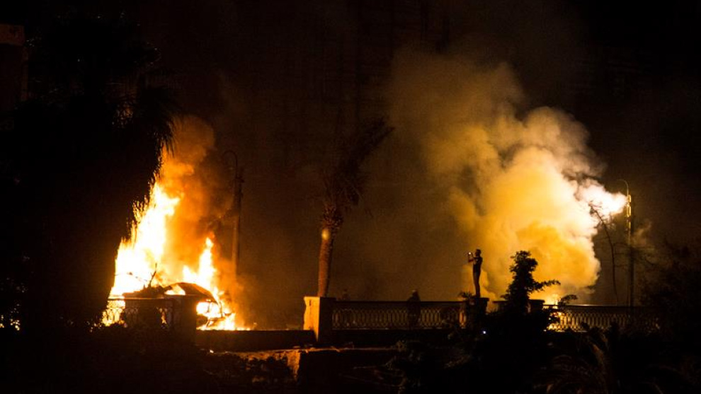 La explosión se ha producido por un vehículo que ha entrado a gran velocidad a la calle y ha chocado con otros automóviles. La colisión ha provocado un fuego que ha afectado a parte del Instituto Nacional del Cáncer en El Cairo, Egipto.