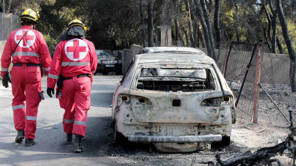Muchos de los damnificados quedaron atrapados el lunes por la noche en el centro turístico de Mati, cerca de Atenas, mientras las llamas acechaban a su alrededor. Algunos de ellos saltaron al mar para sobrevivir, pero otros murieron por asfixia en sus coches o acorralados al borde de acantilados pronunciados.