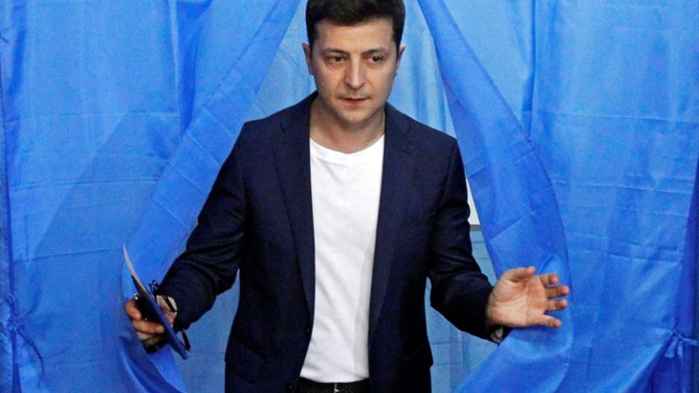 Según todos los sondeos de opinión, Zelenski ganaría este domingo las elecciones con entre un 60 % y 70 % de los votos