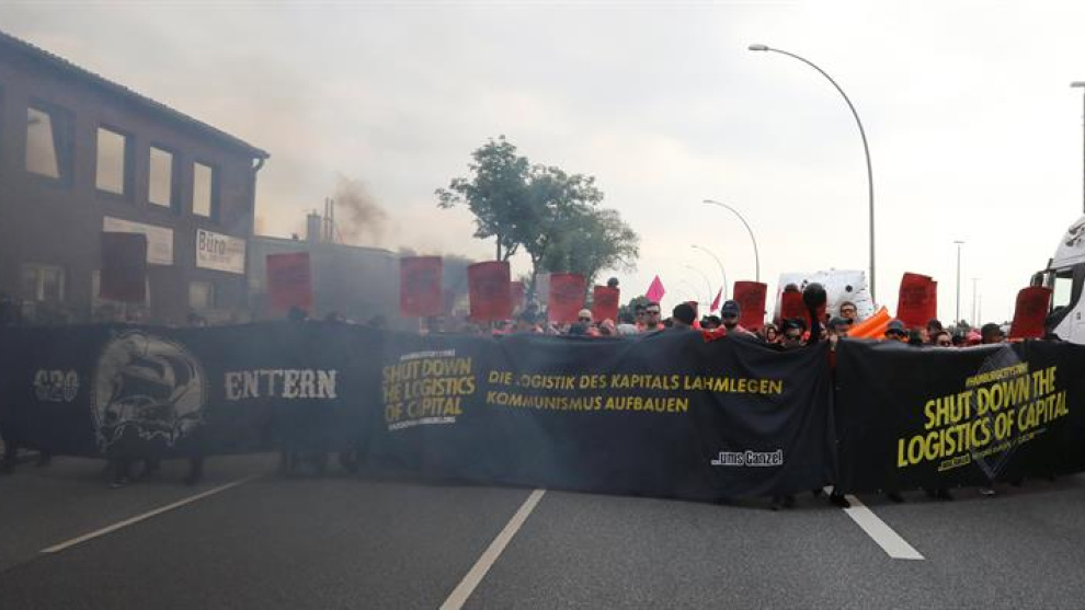 Al menos 70 agentes de la Policía resultaron heridos este jueves en los disturbios desencadenados en Hamburgo durante una marcha de signo izquierdista, en la que hubo además un número indeterminado de lesionados entre los manifestantes y detenciones.