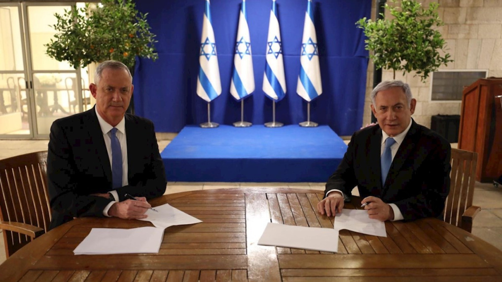 El acuerdo de gobierno que el lunes por la noche firmaron, sentados en la misma mesa pero a los dos metros de distancia reglamentarios, el líder del Likud, Benjamín Netanyahu, y su homólogo de Azul y Blanco, Benny Gantz, va a permitir que el primero siga como primer ministro durante 18 meses, después de una década nefasta para Oriente Próximo en la que Netanyahu ha movido a su antojo las fichas de Estados Unidos y de los sumisos países árabes aliados en la región.
