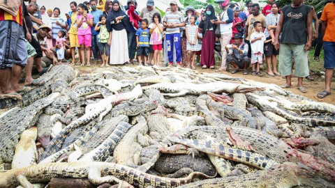 Matanza de cocodrilosUna aldea indonesia venga la muerte de un vecino matando 300 cocodrilos de una granja