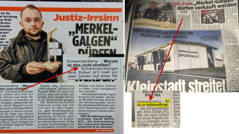 La polémica comenzó, tal y como informa El País, cuando un comerciante vinculado a la extrema derecha de la localidad de Niederdorf, en el Estado federado de Sajonia, puso a la venta pequeñas horcas de madera con letreros donde se puede leer “Reservada para Angela, Mutti, Merkel” y Reservada para Sigmar, der Pack, [el paquete] Gabriel”. Las figuras miden 21 centímetros de alto y 15 ancho, se pueden adquirir por 15 euros y la primera vez que se vieron fue en una manifestación del grupo xenófobo Pegida en Dresde.
