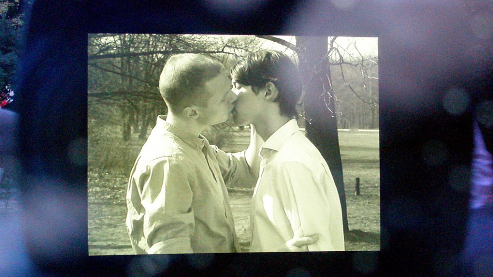 El monumento en memoria a ese colectivo perseguido por el régimen de Adolf Hitler fue erigido hace diez años y consiste en un pilar de hormigón de cuatro metros de altura, diseñado por los artistas escandinavos Michael Elmgreen e Ingar Dragset, en cuyo interior se ve un vídeo con dos hombres besándose.