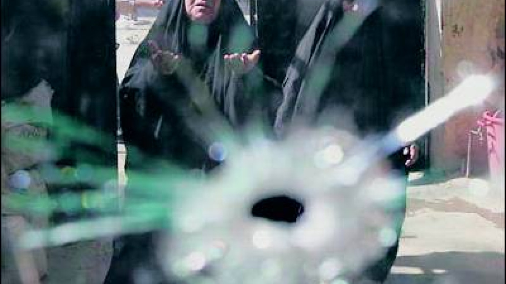 La zona ya estaba en calma y Noor-Eldeen decidió sacar fotos de los restos de los enfrentamientos. Una de ellas la del cristal roto por una bala con unas mujeres iraquíes al fondo.