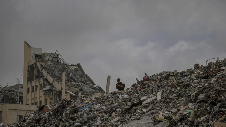 Un niño camina entre montones de basura y escombros en la ciudad de Gaza en una imagen tomada el pasado lunes.