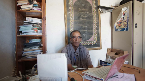 La vida de Azman es un ejemplo de entrega a la causa saharaui. Tiene 56 años y desde que Marruecos ocupó el Sáhara Occidental no ha hecho otra cosa que luchar para recuperar su tierra, su vida y la soberanía de su pueblo. “Unos cumplen con la causa a través de las armas, vigilando las fronteras... Mis armas son las comunicaciones, las redes... Intento que todos tengan servicio a Internet y que, por ejemplo, cuando ustedes vienen aquí puedan enviar sus crónicas y que el mundo sepa lo que está ocurriendo con el pueblo saharaui”, narra Azman, desde el pequeño despacho que tiene en el campo de refugiados de Dajla.