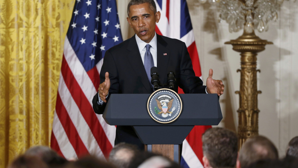 Barack Obama en una rueda de prensa en la Casa Blanca con motivo de la visita de David Cameron la semana pasada. /REUTERS