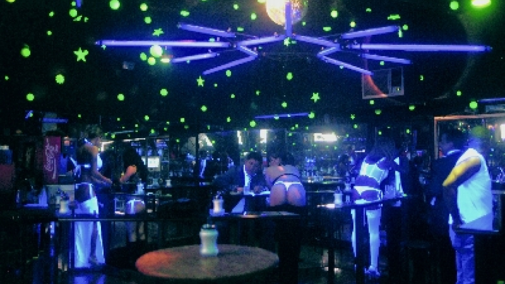 Sheila viste un tanga negro. Tacones altos. Un mini bikini que mal oculta sus pezones. Camina, superlativamente curvilínea, bajo unas luces rojas y apagadas. Y se acerca al cliente, restregándole los senos, para hacer la pregunta que realiza cada día. No le interrogará acerca de sus preferencias sexuales. Ni siquiera soltará el clásico ¿buscas compañía? Ella sabe lo que quiere este cuarentón de traje oscuro y corbata impecable: un café con leche. Sólo eso. "Y un poco de cariño y conversación", afirma Sheila mientras roza a los clientes con sus pechos rígidos y neumáticos.