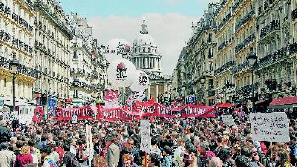 El presidente intenta que la protesta muera a fuego lentoLas protestas están reuniendo desde enero a millones de franceses, en huelga o en manifestaciones, en torno a una plataforma unitaria reivindicativa que constituye un auténtico programa alternativo de Gobierno. Como exige más gasto en formación y en protección del empleo, y reclama a la patronal menos distribuciones de dividendos a los accionistas y de sobresueldos a los dirigentes, este bloque sindical se ha convertido en la única oposición real a Sarkozy y su rodillo parlamentario en forma de mayoría absoluta.