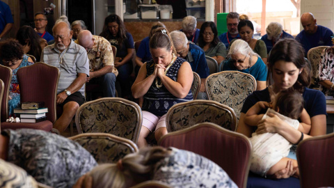 Un gran número de supervivientes y feligreses se reunieron el 13 de agosto en el Maui Coffee Attic en Wailuku para acudir a un servicio religioso dominical. El lugar abrió sus puestas para el acto después de que la iglesia Bautista Grace y la casa del pastor Brown en Lahaina fueran destruidas por el incendio.