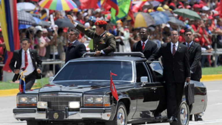 Junto a él, sus aliados del ALBA (Alianza Bolivariana para los Pueblos de Nuestra América), más la presidenta argentina Cristina Kirchner y el mandatario dominicano Leonel Fernández. Y surcando los cielos, los cazas rusos Sukhoi y los chinos K-8W, retando las leyes de la gravedad para deleite de los miles de caraqueños convocados a los fastos.