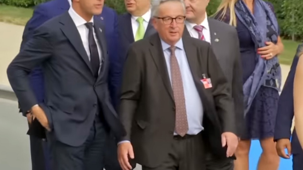 Unas imágenes del presidente de la Comisión Europea, Jean-Claude Juncker, en la cumbre de la OTAN que se ha celebrado en Bruselas están dando mucho que hablar. Juncker acudió este miércoles a la foto de familia con los demás líderes de la Alianza Atlántica pero las cámaras captaron cómo apenas podía dar pasos sin tambalearse y tuvo que ser ayudado por otros dirigentes a subir y bajar escalones.