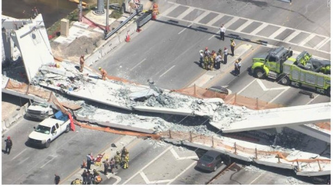 Las imágenes transmitidas por la televisión muestran una gran sección del puente derrumbado atravesado sobre la vía y con varios vehículos debajo de la estructura. La estructura pesaba 950 toneladas, tenía 53 metros de longitud y su presupuesto ha sido de 14,2 millones de dólares y fue instalado este sábado.