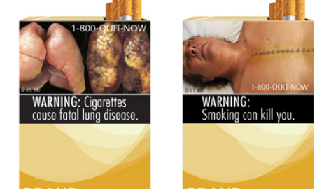 La agresiva campaña del Departamento de Salud se basa en la impresión de nueve imágenes seleccionadas por científicos y usuarios de Internet, acompañadas con textos de advertencia más grandes y gráficos de no habitual.