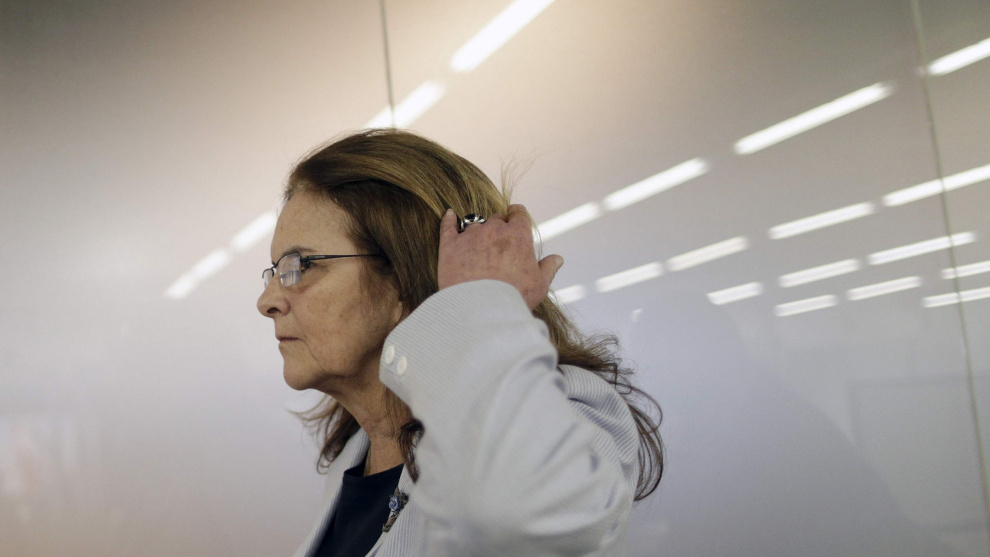La hasta ahora presidenta ejecutiva de la petrolera Petrobras Maria das Gracas Silva Foster, en el aeropuerto de Brasilia, al volver de un encuentro con la presidenta Dilma Rousseff. REUTERS/Ueslei Marcelino