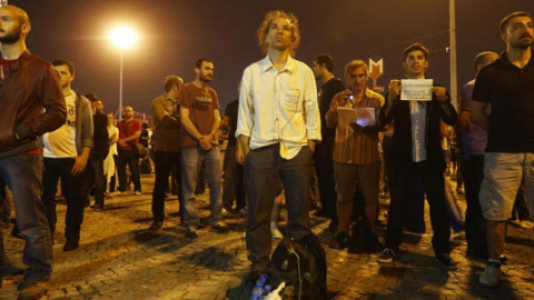 Este mismo lunes, las fuerzas de seguridad turcas han arrestado a un hombre que ha permanecido inmóvil durante seis horas en la plaza Taksim de Estambul en protesta contra un cacheo por parte de la Policía. El arrestado, que ha sido identificado como el artista Erdem Gunduz, ha conseguido desatar una oleada de comentarios en las redes sociales y ha logrado que decenas de personas se hayan unido a su protesta silenciosa junto a él, frente a una imagen del fundador de la República de Turquía, Mustafá Kemal Ataturk, que ondea en el Centro Cultural Ataturk (AKM), uno de los epicentros de las protestas antigubernamentales de las últimas semanas. Poco después, las informaciones en torno al acto de protesta comenzaron a circular en las redes sociales, donde el hashtag #duranadam ('hombre de pie') se convirtió en 'trending topic' a nivel mundial. Posteriormente, decenas de personas se dirigieron al lugar, tras lo que la Policía arrestó a Gunduz, que volvió a ser liberado poco después.
