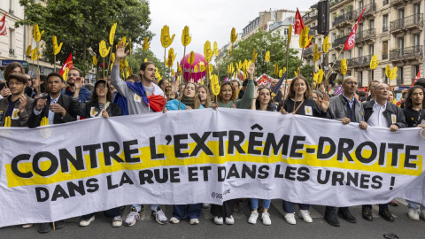 "Tenemos que evitar esta catástrofe organizada por Emmanuel Macron y Marine Le Pen", ha subrayado Sophie Binet, secretaria general de la Confederación General del Trabajo (CGT), uno de los cinco sindicatos que han convocado durante el fin de semana más de 200 manifestaciones en todo el país.