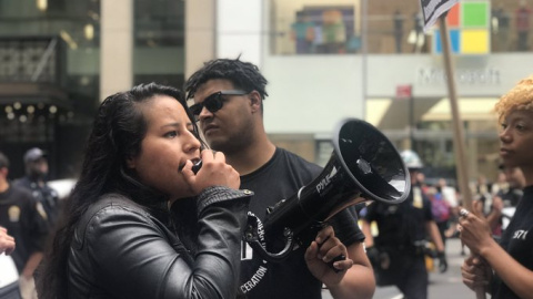 "Siendo cómplices con las acciones (de las corporaciones) estamos siendo cómplices con el acoso de la comunidad latina y la tortura racista y el trauma que se le está infligiendo", aseguró en un comunicado Beatriz Lozano, una de las organizadoras de la protesta, que forzó a Microsoft a cerrar la tienda.