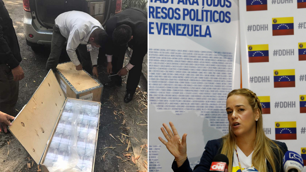 Agentes de la policía científica registran las cajas con dineros de la opositora Lilian Tintori (derecha)- AGENCIAS