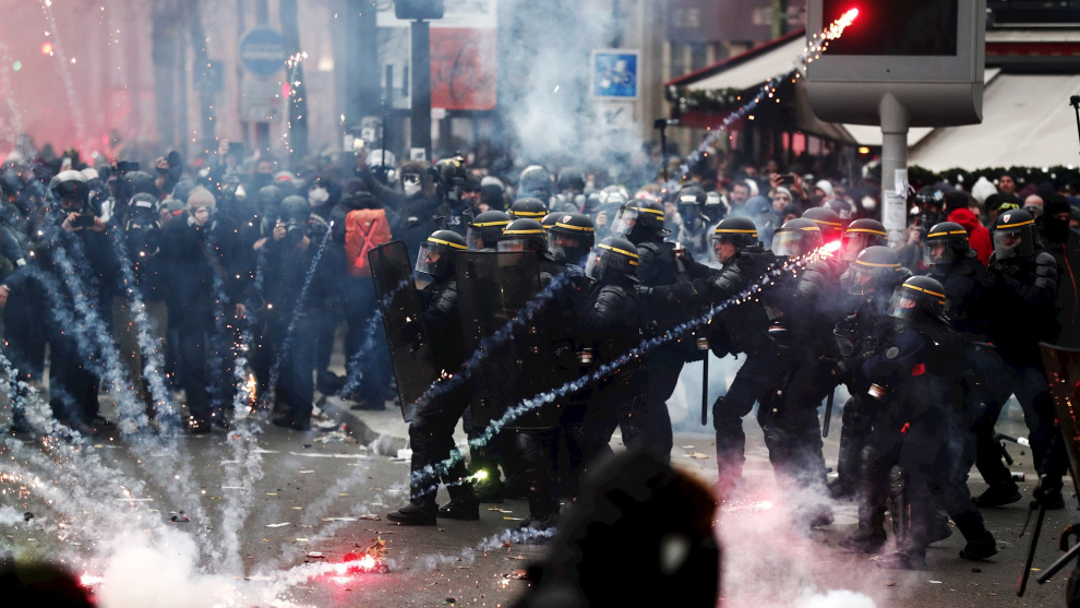 La huelga indefinida convocada a partir de este jueves por varios sindicatos en contra de la reforma de las pensiones promovida por el presidente francés, Emmanuel Macron, ha sacado a la calle a miles de personas en una treintena de ciudades, entre ellas la capital París, donde se han registrado por la tarde enfrentamientos entre manifestantes radicales y fuerzas de seguridad.