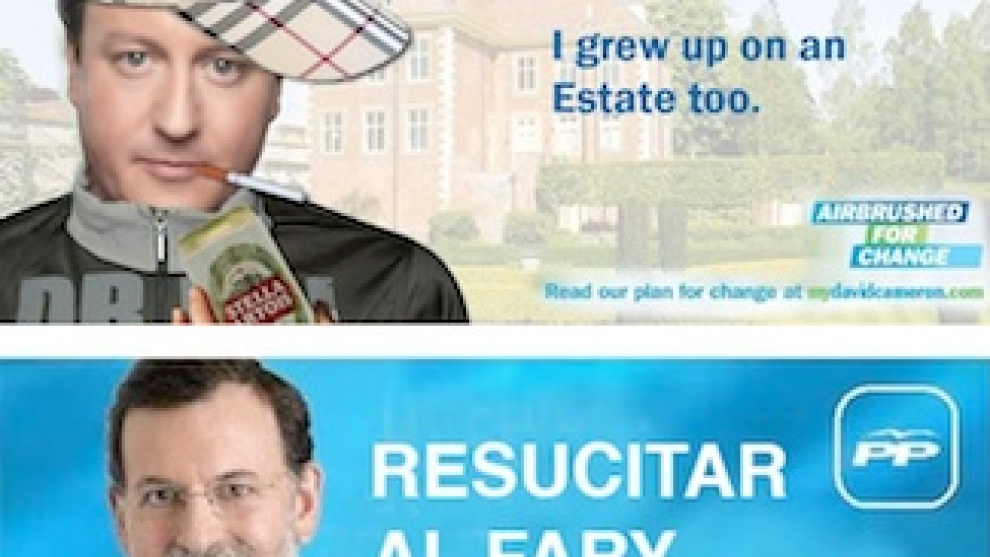 Como ya le pasara a Mariano Rajoy en las elecciones generales de 2008, los carteles publicitarios de Cameron han sido parodiados tanto en Internet como en las calles. Los conservadores culpan a la campaña de sus desgracias. El primer ministro, Gordon Brown, ha conseguido rebajar la diferencia de más de 20 puntos que searaban a ambos partidos hace un año. La debacle es tal que, de seguir así las cosas, los laboristas tienen muchas posibilidades de seguir gobernando.