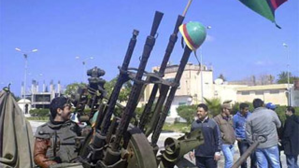 El régimen ha contestado con el bombardeo de un depósito de armas cerca del cuartel de Hania, en la región de Edjibiya, a unos 200 kilómetros al oeste de Bengasi, la segunda ciudad del país y que está bajo control de los opositores.