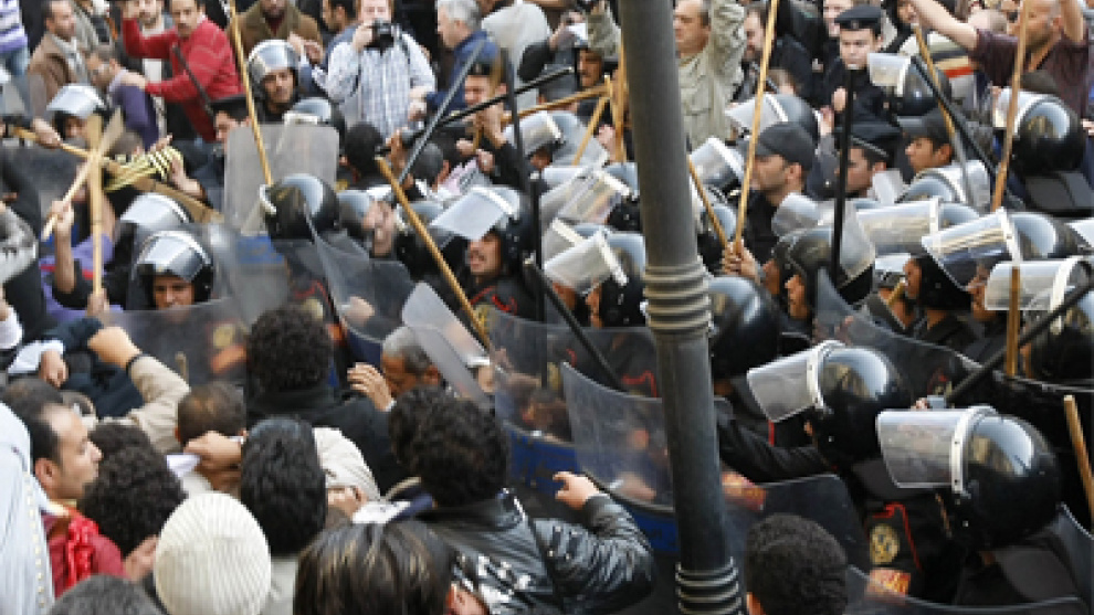 El régimen de Mubarak había vetado las protestas. Los manifestantes se enfrentan a la policía en el centro de El Cairo. Hay varios heridos y cientos de detenidos