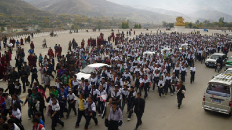 En las protestas participaron entre 1000 y 7000 estudiantes de seis escuelas diferentes de la región, de acuerdo con la información publicada por Free Tibet y la emisora de radio estadounidense Radio Free Asia. Algunos vídeos de la marcha colgados en Internet muestran a jóvenes con uniforme escolar junto a monjes budistas tibetanos.