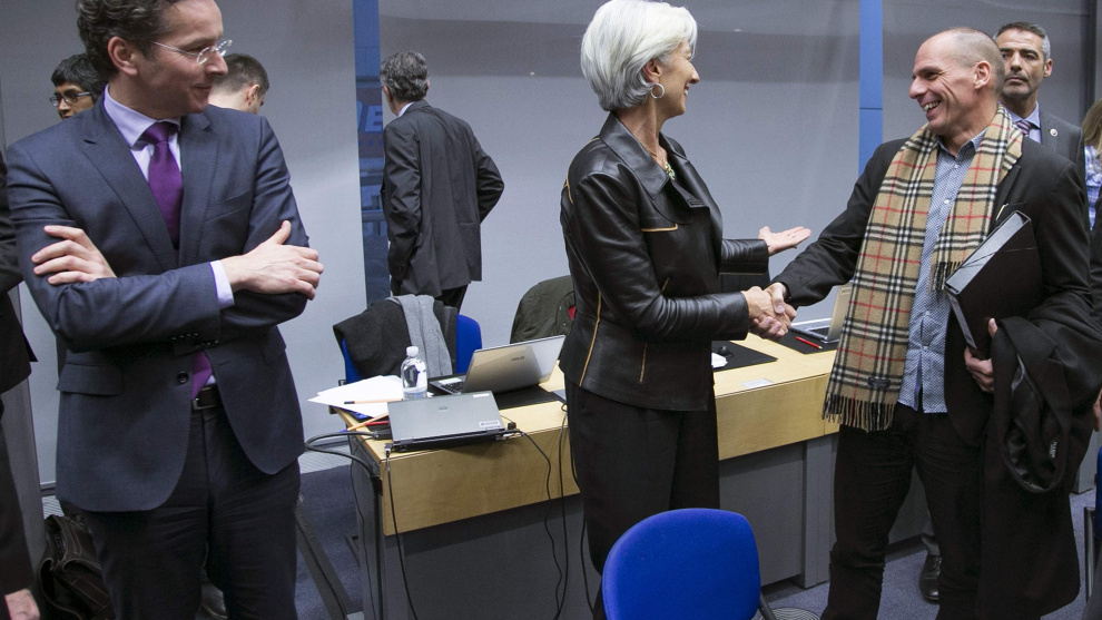 A la reunión asistieron la directora gerente del Fondo Monetario Internacional (FMI), Christine Lagarde, y el presidente del Banco Central Europeo (BCE), Mario Draghi, que forman, junto con la Comisión Europea (CE), la llamada troika que el nuevo Gobierno de Tsipras rechaza.