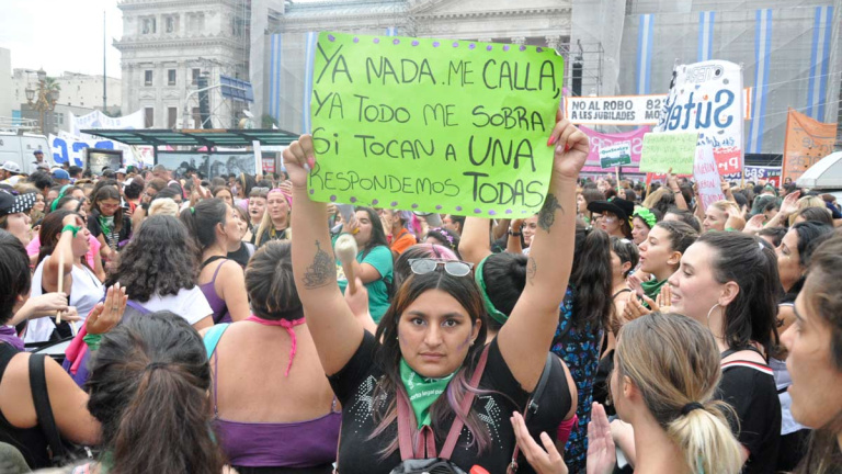 La lluvia no pudo opacar el clamor que recorrió este lunes la ciudad de Buenos Aires cuando decenas de miles de mujeres salieron a las calles durante el cuarto paro feminista que se celebró de manera dispar en todo el país. "Vivas, libres y desendeudadas nos queremos, aborto legal ya" fue un grito unánime en la misma semana en la que el Gobierno de Alberto Fernández presentará un proyecto de ley sobre la interrupción voluntaria del embarazo.