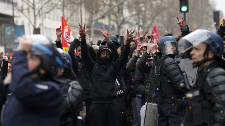 La ley del trabajo ha generado semanas de movilización en las calles, con manifestaciones multitudinarias en todo el país. El 9 de marzo se manifestaron entre 200.000 y 450.000 personas contra este proyecto de ley. El 24 de marzo fue otra jornada de lucha, con manifestaciones menos masivas a lo ancho y largo del país. En París, la violencia policial contra un adolescente de 15 años de raza negra que se manifestaba contra la reforma gubernamental generó gran indignación y nuevas protestas, llegando a ser atacadas dos comisarías de policía. (VEA AQUÍ EL VÍDEO DE LA AGRESIÓN)