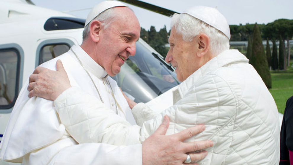 Benedicto, que se convirtió en el primer Papa en renunciar en 600 años en lugar de mantenerse en el cargo hasta su muerte, vive temporalmente en la residencia de los montes Albanos. Volverá al Vaticano tras la restauración de un convento en el que se espera que resida durante el resto de su vida. Poco antes de su renuncia, Benedicto, de 85 años y con una salud frágil, dijo que se "encerraría en la oración" y que pasaría el resto de sus días "escondido del mundo". En febrero, en el último día de sus cerca de ocho años como líder de la Iglesia católica, prometió su obediencia incondicional a quién fuera su sustituto.
