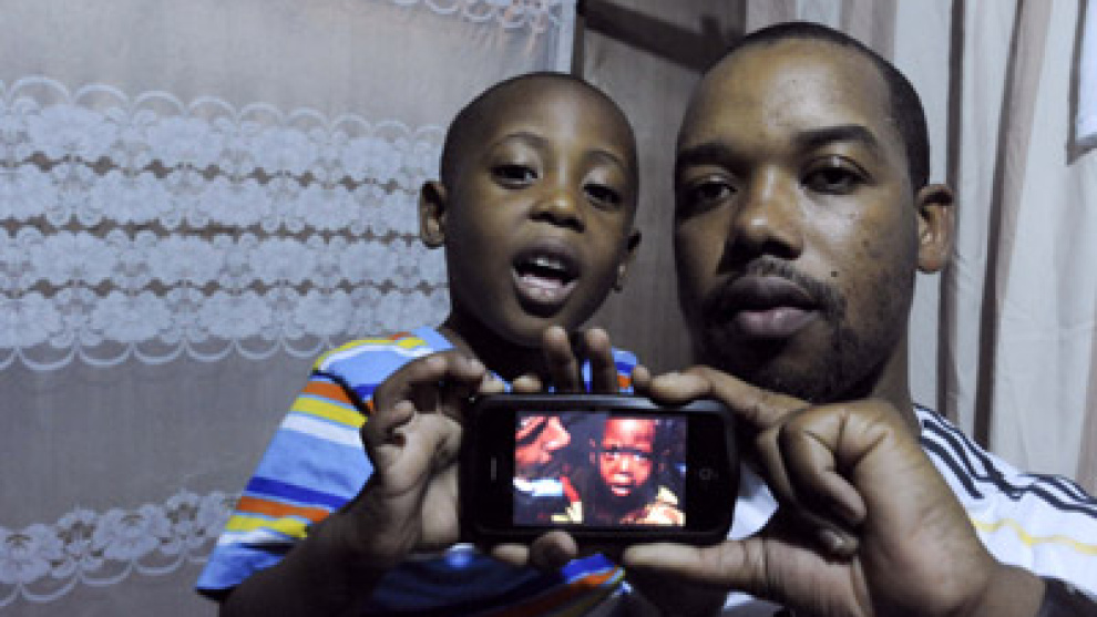 "Redji no se acuerda de nada, tenia dos años. Con el terremoto, su abuela, ya muerta, lo agarraba así, con las dos manos", explican Reginald y Plaisir Claude, sus padres, una pareja de clase media que lo perdió todo ese día, también a Marvou, su otro hijo de 8 años y de cuya fotografía Redji no se separa. Ahora, están viviendo en casa de un amigo. El padre trabaja en una empresa y la madre no tiene empleo. El encuentro con este diario se produce en unas tiendas de campaña cercanas a la iglesia evangélica a la que pertenecen.