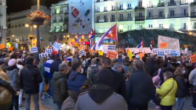 En la Puerta del Sol de Madrid también se concentraron unas 200 personas contra la "dictadura" en Cuba, a favor de la "libertad" y apoyar las marchas del 15N convocadas en el país caribeño para pedir un cambio político. "Nuestro principal objetivo es visibilizar que en Cuba hay un gobierno totalitario", sintetizó en declaraciones a Efe Lázaro Mireles, de la plataforma Somos+. Porque las autoridades cubanas "están acabando y suprimiendo los derechos humanos de millones de personas", aseguró.