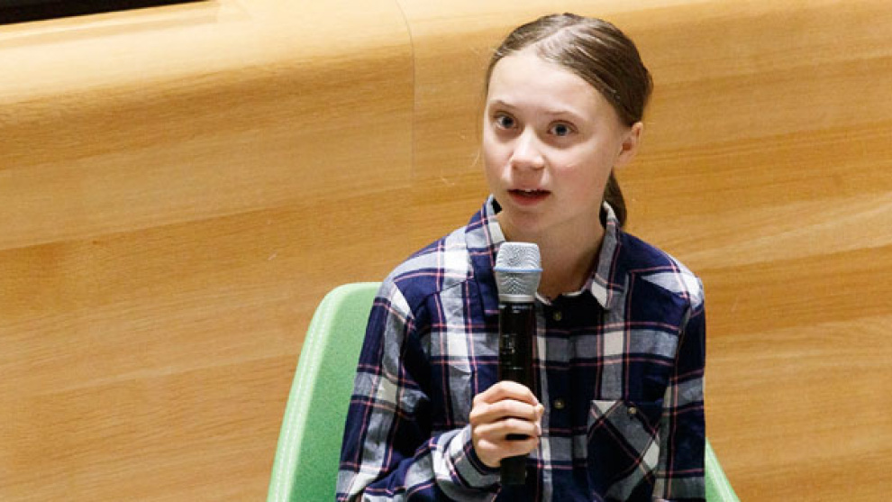 La activista medioambiental exige en la ONU acciones para lograr un mundo sin emisiones contaminantes.