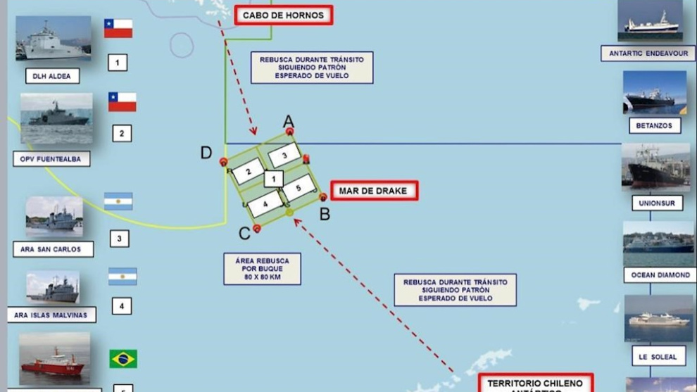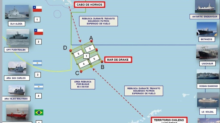 El hallazgo se produjo poco después de que la Fuerza Aérea de Chile (FACh) informara de que habían sido hallados restos de esponja pertenecientes a partes del avión flotando en el mar en ese mismo lugar, en el mar de Drake, que separa Suramérica del continente helado y cuyas aguas están consideradas unas de las más turbulentas del planeta.