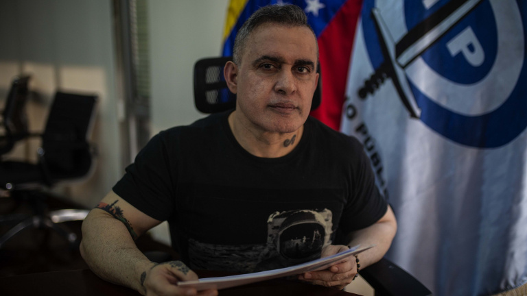 Saab recibe a Público en su despacho del Ministerio Público, en Caracas, casi tres horas después de la cita acordada. Llega en ropa de deporte porque tiene la costumbre de entrenar casi a diario, como prueban sus enormes y musculados brazos sobre los que se desparraman varios tatuajes, algunos hasta el cuello. Asumió el cargo de Fiscal General de la República Bolivariana de Venezuela en 2017, cuando lo designó la recién elegida Asamblea Nacional Constituyente, donde sólo hay diputados chavistas al no presentarse a esas elecciones ningún representante de la oposición. Antes de eso, fue Defensor del Pueblo desde 2014, gobernador del Estado Anzoátegui entre 2004 y 2012, diputado chavista en la Asamblea Nacional entre el 2000 y el 2004 y miembro de la Asamblea Nacional Constituyente de Venezuela de la que emanó la Carta Magna que el pueblo venezolano aprobó en referédum por más del 71% de los votos en 1999.