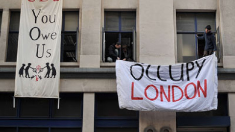 Los indignados llevan ya un mes instalados en un campamento de más de cien tiendas de campaña junto a la catedral de San Pablo, en la City, el sector financiero de la ciudad, y un grupo más reducido se ha ubicado en Finsbury Square, en el norte de Londres. El UBS es el primer edificio del que se han apoderado.