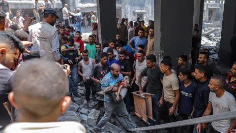 Siete palestinos más fueron abatidos también por drones y disparos de artillería del Ejército israelí en las inmediaciones del punto de distribución del HGF en Wadi Gaza, en el centro de la Franja, y otros cuatro en el espacio de distribución de alimentos de Tal Al Sultan, en Rafah, en el sur del enclave.