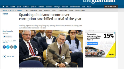 The Guardian también subraya la importancia del caso y apunta que “políticos españoles” están involucrados en “el juicio del año por corrupción”. El diario británico explica que por el sumario de la Gürtel desfilan "cuentas bancarias suizas, payasos, facturas falsas y, lo más llamativo de todo, varios ex altos cargos del PP”.