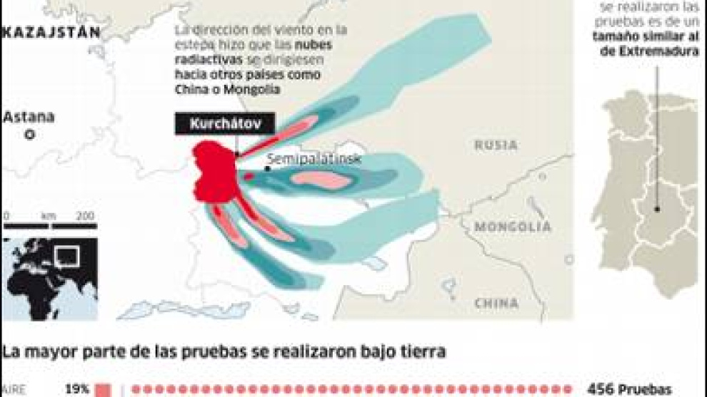 El antaño ultrasecreto polígono de Kurchátov, un territorio del tamaño de Extremadura al este de ese enorme país de Asia Central, sirve hoy un doble propósito. El sitio alberga un centro de investigación sobre energía nuclear y sus sistemas de sismografía permiten detectar explosiones sospechosas en países tan lejanos como Corea del Norte.